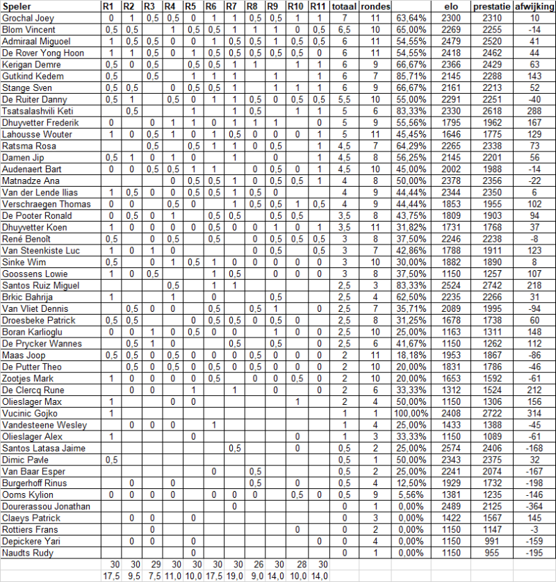 11/09/2018: OPGELET: wijziging kalender: 30/11: simultaan Daniël Dardha