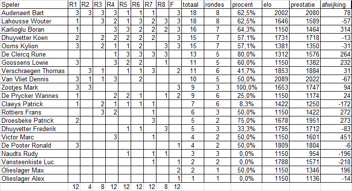 29/09/2018 Na 3 rondes staat Kylion aan kop in het clubkampioenschap met 3 op 3